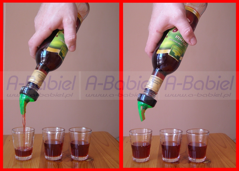 Nalewak - porcjomierz przeznaczony jest do nalewania alkoholu. Jego konstrukcja i parametry zostały tak dobrane, ze najlepiej spisuje się jako nalewak do wódki. Mniejsze stężenie alkoholu ma inny ciężar i obiętość. W praktyce nalewak można też wykorzystać np. do nalewania wina. Świetnie spisuje się również przy nalewaniu napojów jak również syropów do drinków. Idealnie nadaje się do szybkiego odmierzania równych porcji alkoholu.