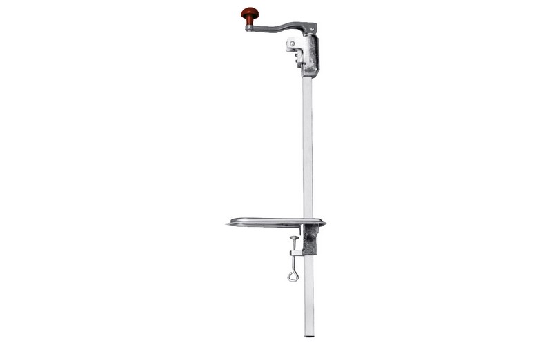 wykonany jest ze stali nierdzewnej. Można nim otwierać puszki o wysokości do 400 mm. Otwieracz mocowany jest do blatu za pomocą złącza śrubowego, pozwala to łatwo go zdemontować np. do mycia.