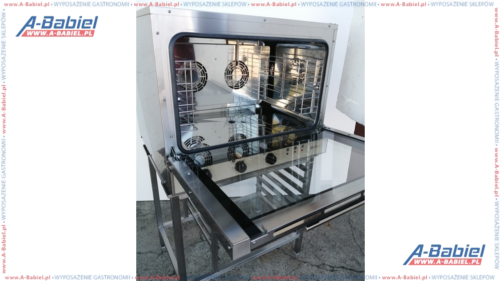 Wypożyczalnia - Piec konwekcyjny z nawilżaniem 4x GN 1/1 – elektryczny, wyposażony sterowanie manualne. Można również wypożyczyć podstawę i pojemniki GN 1/1 do pieca. Koszt dowozu i montażu wynajętych urządzeń wyceniamy indywidualnie.