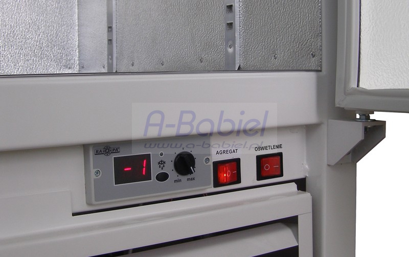 powietrza. Dostępna jest również wersja z obiegiem wymuszonym. Szafy posiadają elektroniczny termostat z cyfrowym wyświetlaczem temperatury wnętrza. Utrzymanie skraplacza w czystości gwarantuje długoletnią bezawaryjną eksploatację urządzenia. W szafach chłodniczych dostęp do skraplacza znajduje się z przodu, za otwieraną kratką maskującą.WAŻNE !!! Szafy chłodnicze można wnieść przez drzwi o szerokości 80 cm.